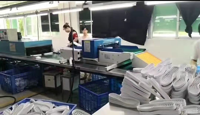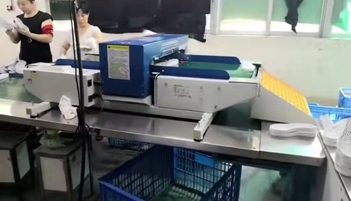 鞋廠流水線上檢針機使用現(xiàn)場圖片